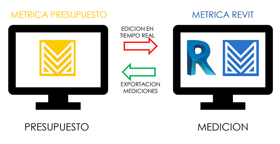 Las funcionalidades de Métrica son operativas dentro de la propia sesión de trabajo de Revit« y cuenta con una interfaz de usuario optimizada para realizar estos enlaces. Esto permite al proyectista incorporar al modelo, de modo interactivo, las definiciones y coste de las partidas mientras se desarrolla el proyecto.